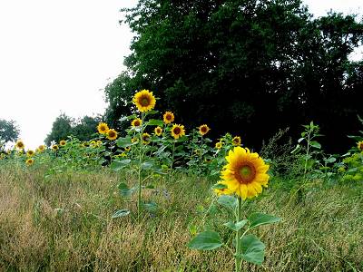 Auch entlang der Äcker wurden von den Landwirten zusätzliche Flächen aus der Bewirtschaftung genommen und mit einer Grünlandmischung eingesät. Hier können Wildblumen wachsen, die wiederum Bienen und Schmetterlinge ernähren oder vom Niederwild als Äsungsfläche genutzt oder auch Vögeln als Nist und Brutplatz dienen. Für die Erholungssuchenden werten diese Streifen die Feldflur optisch auf und erweitern das Erlebnispotenzial in der Feldflur. Auch helfen Sie Erosion vermeiden - der Mulchstreifen kann von den Feldwegebenutzern zum Ausweichen benutzt werden.