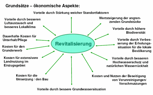 • Finanzielle Aspekte / Methoden der Finanzierung (kann der Wert von Renaturierungsmaßnahmen
