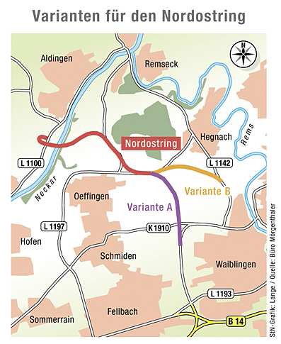 Dabei hofft vor allem Waiblingen auf Bewegung in der Fellbacher Ablehnungsfront. Die Kreishauptstadt stützt sich dabei auf ein Gutachten des Ingenieurbüros Mörgenthaler zum Nordostring. Demnach bleiben noch zwei Varianten für eine neue Straßenverbindung übrig: Zum einen die südliche Umfahrung des Waiblinger Stadtteils Hegnach. Zum anderen die direkte Verlängerung der Waiblinger Westumfahrung in Richtung neue Neckarbrücke. Diese Variante wird von den bürgerlichen Fraktionen wie auch von OB Andreas Hesky favorisiert. Voraussetzung: Die Strecke erhält einen Tunnel oder einen Deckel, um Landschaft und Ökologie zu schonen. Das Ingenieurbüro berechnete die Baukosten für die Straße inklusive eines 700 Meter langen Tunnels mit 13,8 Millionen Euro. Ein Betrag, den der Waiblinger FDP-Abgeordnete und Justizminister Ulrich Goll kürzlich als gar nicht so dramatisch einstufte; die Finanzierung durch das Land sei durchaus denkbar. Grundsätzlich will sich die Stadt Waiblingen allerdings erst am 21. Februar in einer Sondersitzung zum Thema positionieren.