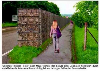 Der Gemeinderat der Stadt Fellbach hat ein schroffes Nein zu den Brückenplänen in seiner jüngsten Sitzung einstimmig beschlossen und zeigte sich negativ beeindruckt von einer voraussichtlich ziemlich hässlichen 560 Meter langen und zwei Meter hohen Lärmschutzwand entlang der Straße, aber ansonsten mitten in der Landschaft, die seit neuestem in den Plänen steht. An der heutigen Straße zwischen Oeffingen und Neckarrems, etwa dort, wo die neue Straße von der Brücke her auf die bestehende Landesstraße trifft, soll sie auf der Ostseite entstehen und einen „wirksamen Schutz für die Vogelwelt" bilden.