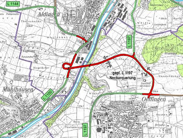 Geplante L 1197 Neckarquerung zwischen Mühlhausen, Aldingen und Oeffingen