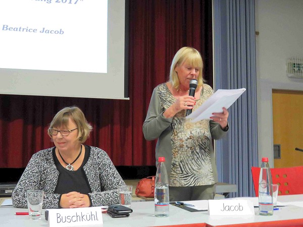 Schriftführerin Beatrice Jacob berichtet kurz über die letzte Hauptversammlung des BVZ. Sie nennt die Zahlen der anwesenden Mitglieder und Gäste und die letztjährigen Themen. Sie sagt, dass sie nach 28 Jahren sich nicht mehr zur Wahl als Schriftführerin stellt. Sie betont, die Arbeit gerne gemacht zu haben und bedankt sich für das stets rege Interesse der Mitglieder und Gäste. Sie bedankt sich fürs Zuhören und bittet um Eintragung in die Anwesenheitsliste.