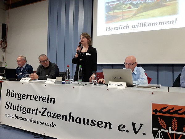 Zur Einleitung berichtet Katrin Scheck vom Aktionstag in Öffingen im September 2018 mit 5000 Teilnehmern, von der Info-Veranstaltung in Kornwestheim und von der Demonstration vor der Alten Kelter in Fellbach beim politischen Aschermittwoch der CDU.